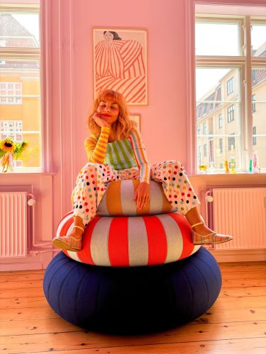 - Das Sitzkissen Float von Studio About aus Dänemark – cool für drinnen und draußen.