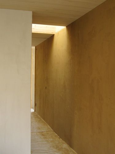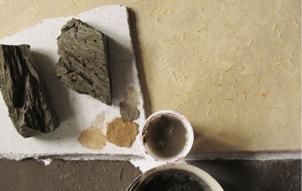 - Die Gestaltung der oberen Schicht mit eingefärbtem Lehmputz